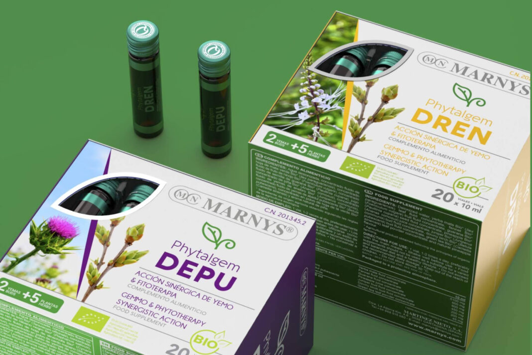 Por su parte, Phytalgem Depu se centra en armonizar los procesos depurativos también con una combinación de extractos de plantas y yemas de cultivo ecológico asociadas a propiedades purificadoras. Contiene diente de león, alcachofa, rábano negro, cardo mariano, enebro y romero, ingredientes asociados tradicionalmente al bienestar digestivo.